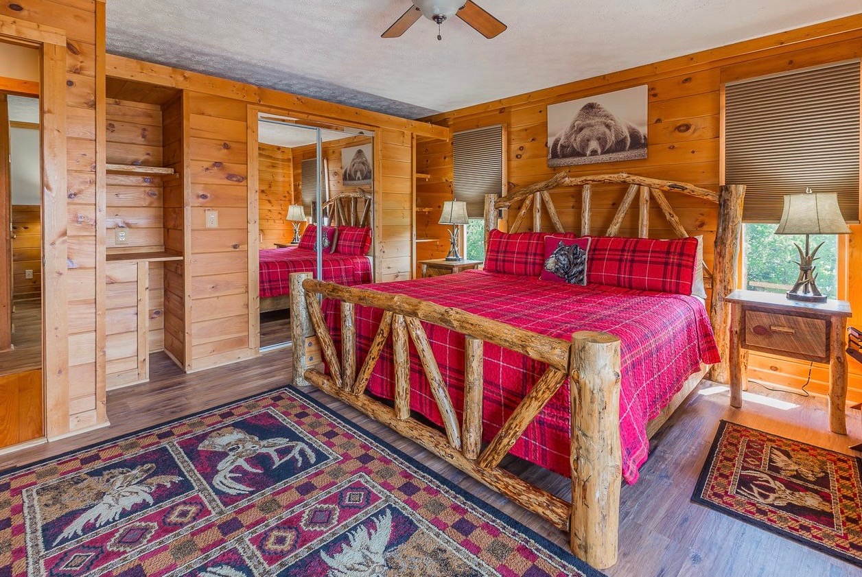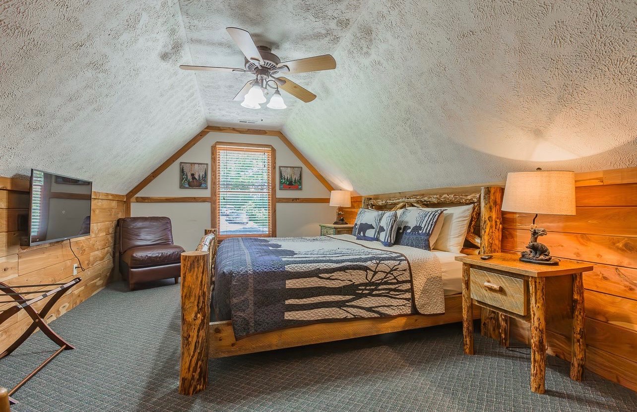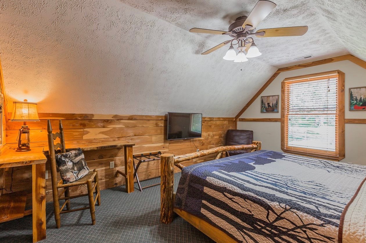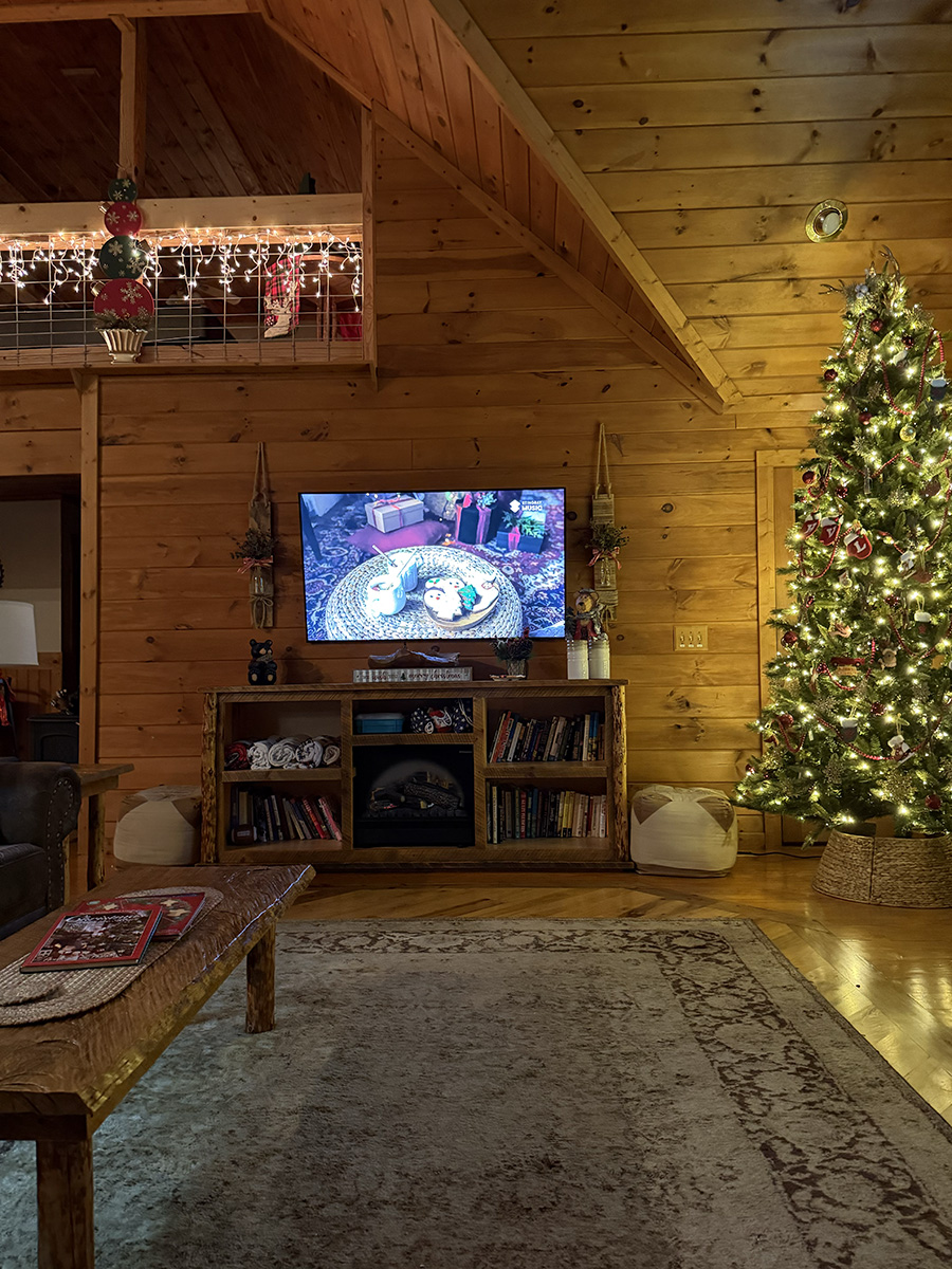 You will find 4 bedrooms with king beds. Three bedrooms are all on lower level, while we have a sofa queen sleeper upstairs. All bedrooms have 55 inch 4K smart TV and cedar closets. The master bath has a large soaking tub with a custom waterfall! Downstairs is an open floor plan with a 20 foot ceiling in the living room. WiFi for the lodge is 100m. TV service is provided by YouTube TV.