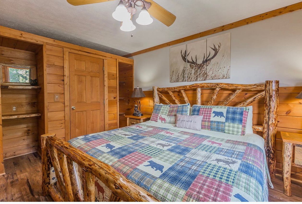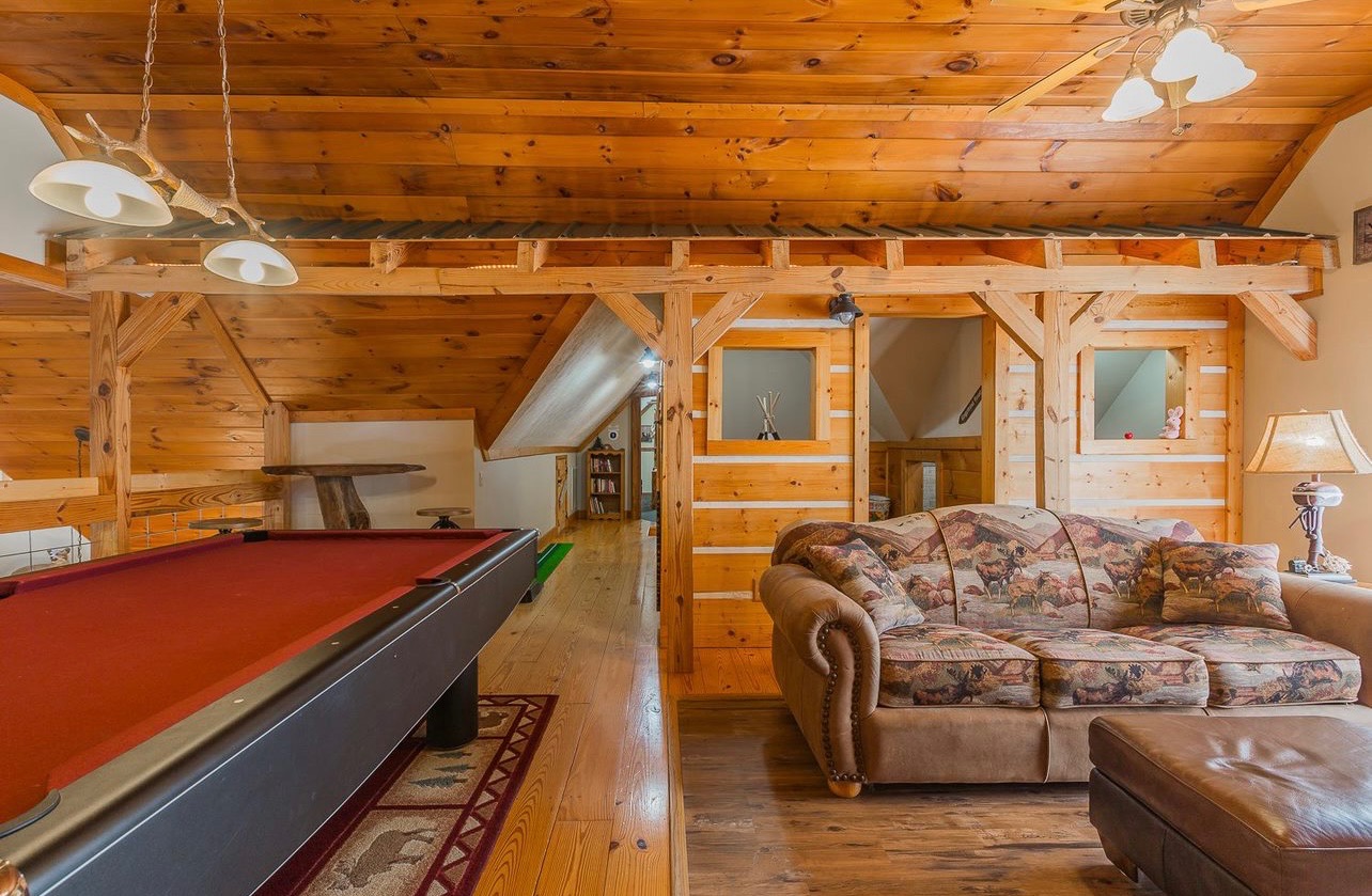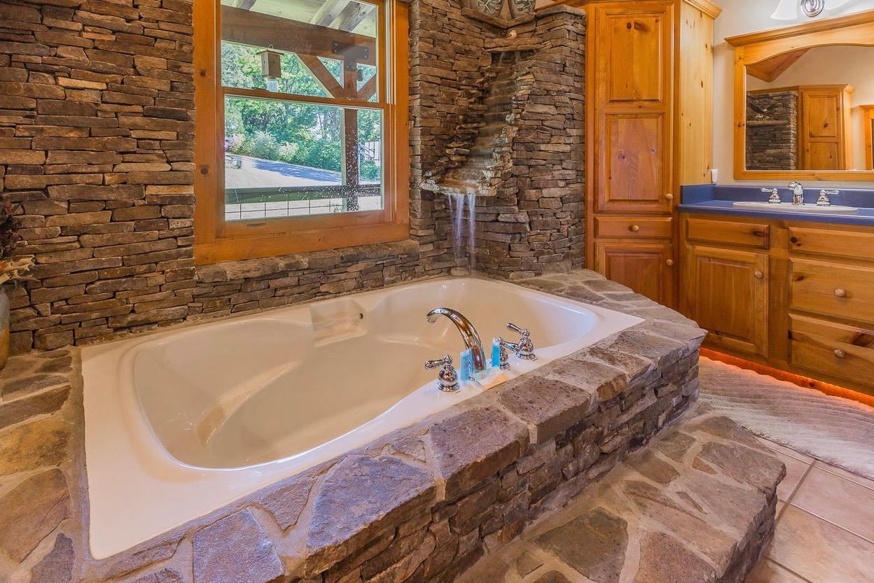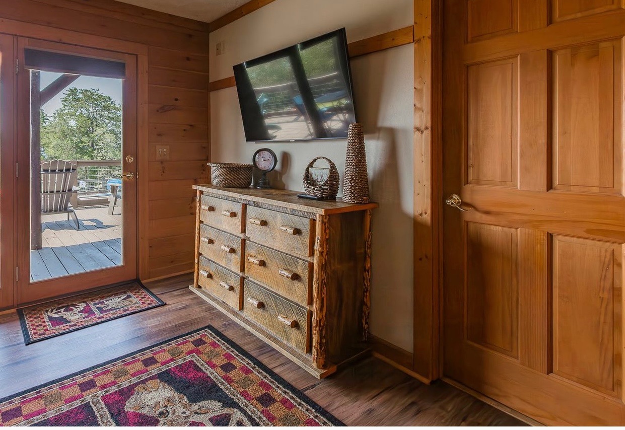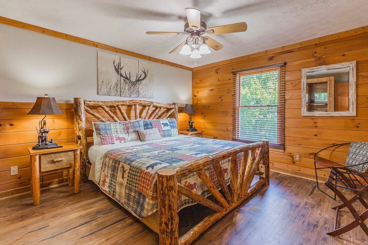 You will find 4 bedrooms with king beds. Three bedrooms are all on lower level, while we have a sofa queen sleeper upstairs. All bedrooms have 55 inch 4K smart TV and cedar closets. The master bath has a large soaking tub with a custom waterfall! Downstairs is an open floor plan with a 20 foot ceiling in the living room. WiFi for the lodge is 100m. TV service is provided by YouTube TV.
