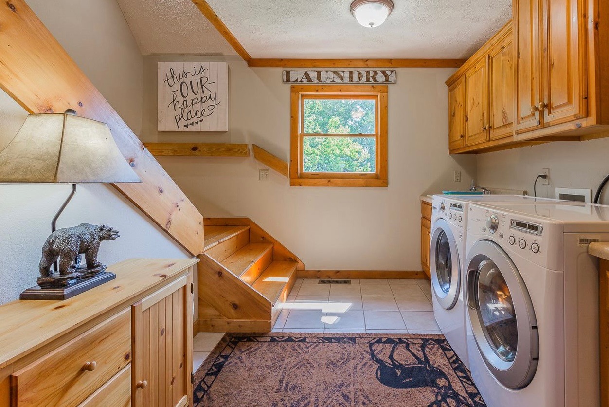 You have to see all the hand carved tables and beds throughout the house…they were all made from a local craftsmen! We have a gas fireplace, a kitchen with all the top amenities, a large laundry room with a large utility sink, and a high chair,Â