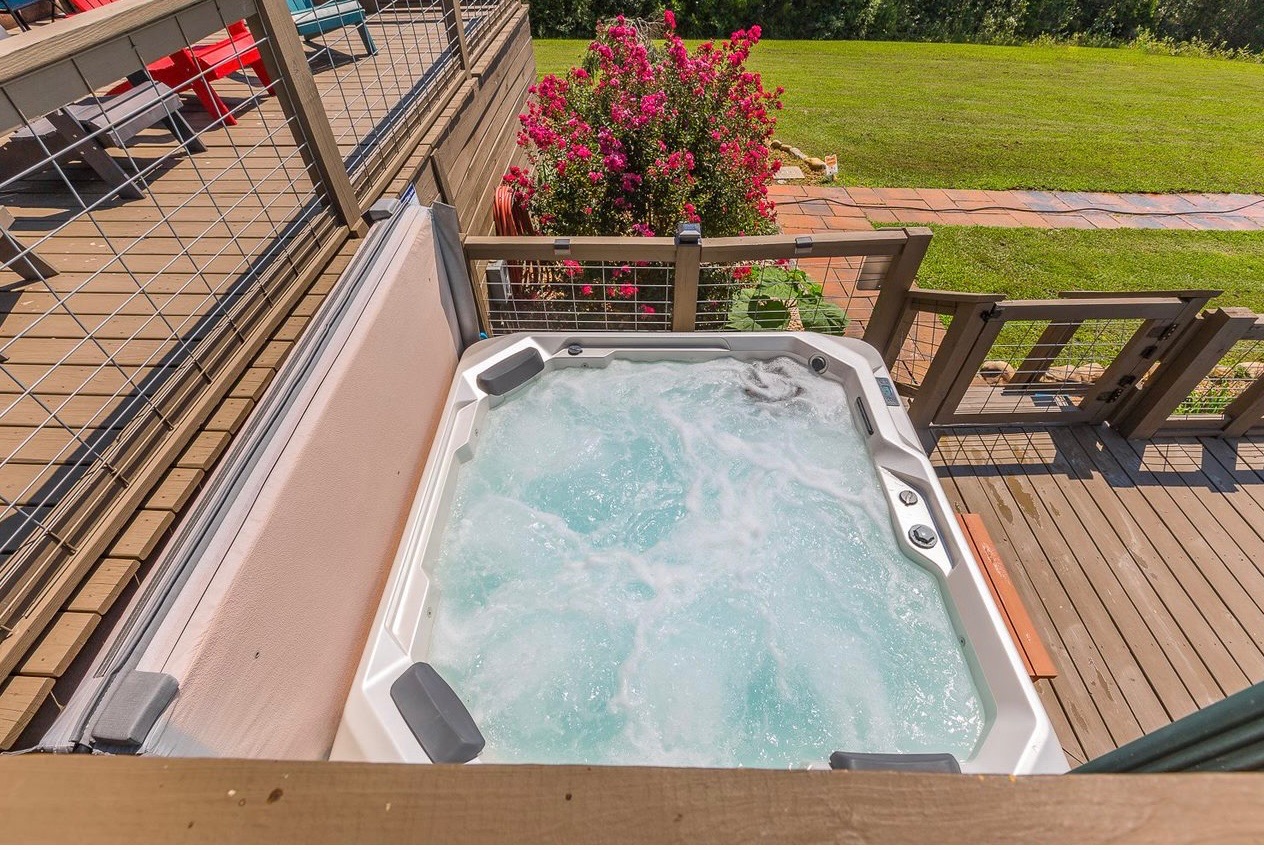 It features a swimming pool, hot tub, large fire-pit, corn hole, basketball goal, large playground, lots of out door seating, pool table, golf game, kids play room, tons of books and board games, a wood burning outdoor fireplace, Weber gas grill, and Weber smoker. We even have a Tesla Charging Station for all types of electric cars and trucks